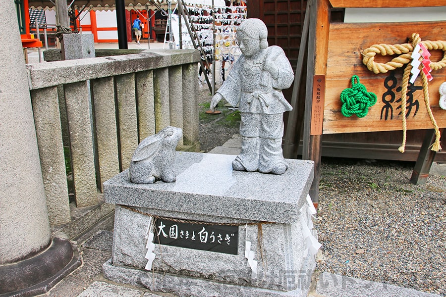 ※八坂神社 大國主社前の大国主神の因幡の白兎の像の様子