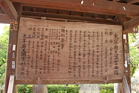 ※太宰府天満宮 由緒の掲示看板の様子