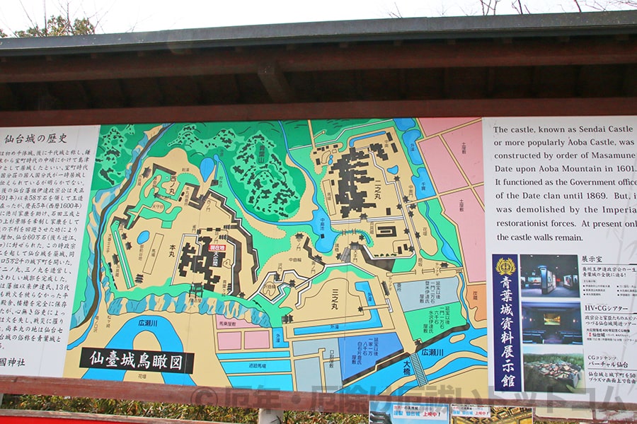 宮城縣護國神社 旧仙台城の俯瞰図の様子