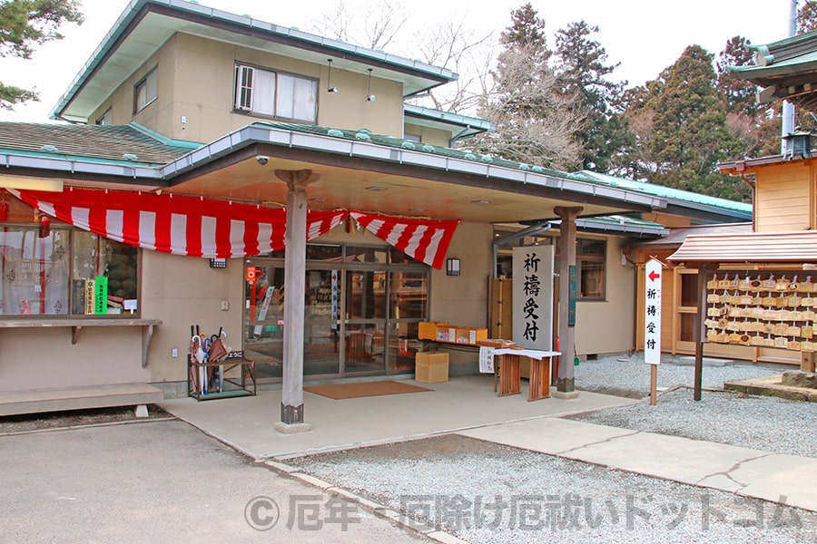 実際の境内では↓下の写真のような社務所があり、この社務所の入口を入ったすぐのところに祈祷受付の窓口があります。