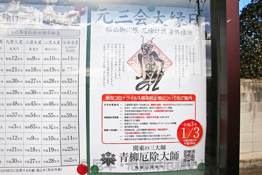 ※青柳大師龍蔵寺 元三会案内掲示の角大師の様子|画像提供:厄年・厄除け厄祓いドットコム