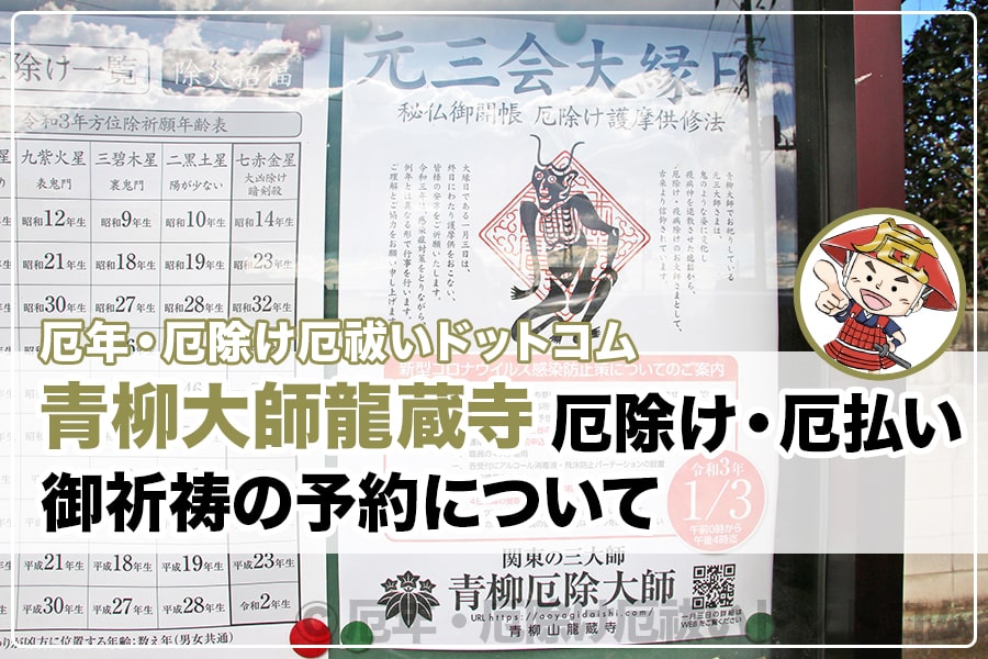 青柳大師龍蔵寺の厄除け・厄払いの御祈祷の予約について、できるのか?できないのか?も含めてお伝えするよー