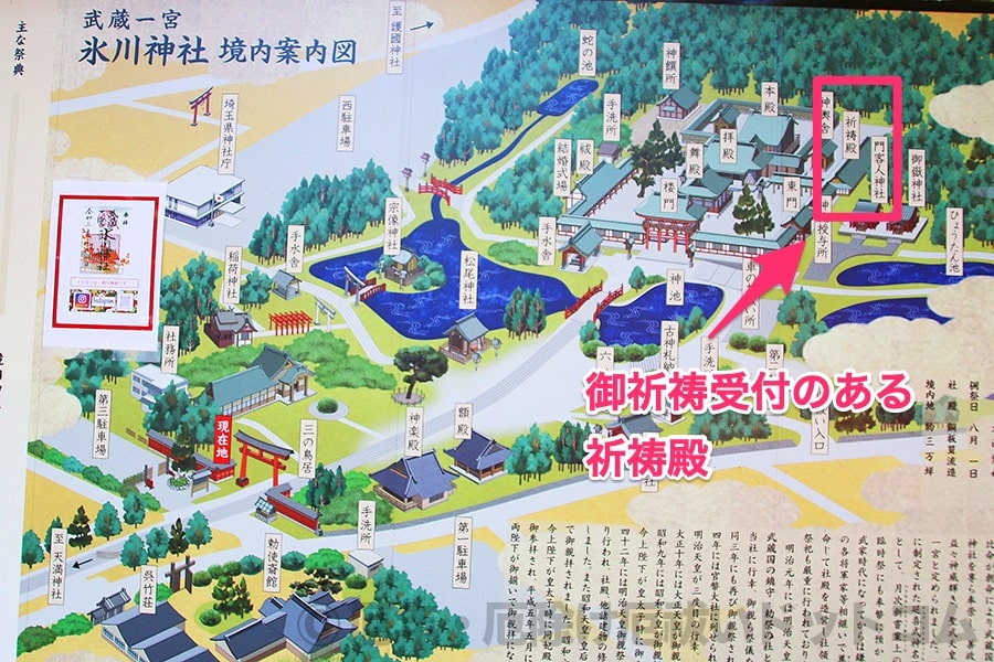 ※大宮氷川神社 境内案内図 御祈祷受付の場所の様子|画像提供:厄年・厄除け厄祓いドットコム