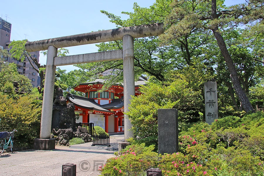 ※千葉神社 境内入口の鳥居と社号標の様子|画像提供:厄年・厄除け厄祓いドットコム