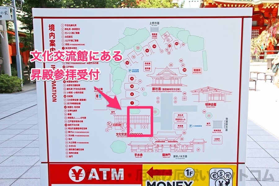 ※神田明神 境内案内図の昇殿参拝受付の場所の様子|画像提供:厄年・厄除け厄祓いドットコム