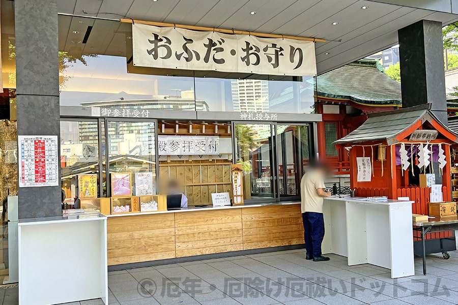 実際には↑写真のような昇殿参拝受付(御祈祷受付)の窓口になっており、この受付窓口にて厄除け・厄払いの御祈祷の申し込みを行います。