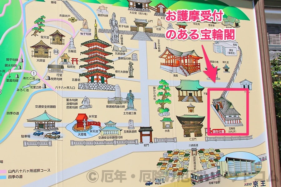 ※高幡不動尊 境内案内図の御護摩受付のある宝輪閣の場所の様子|画像提供:厄年・厄除け厄祓いドットコム