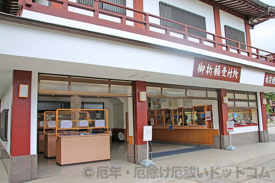 厄除けのお護摩が行われる本堂の手前参道左手にある「受付棟」の中に御祈願受付所があります。