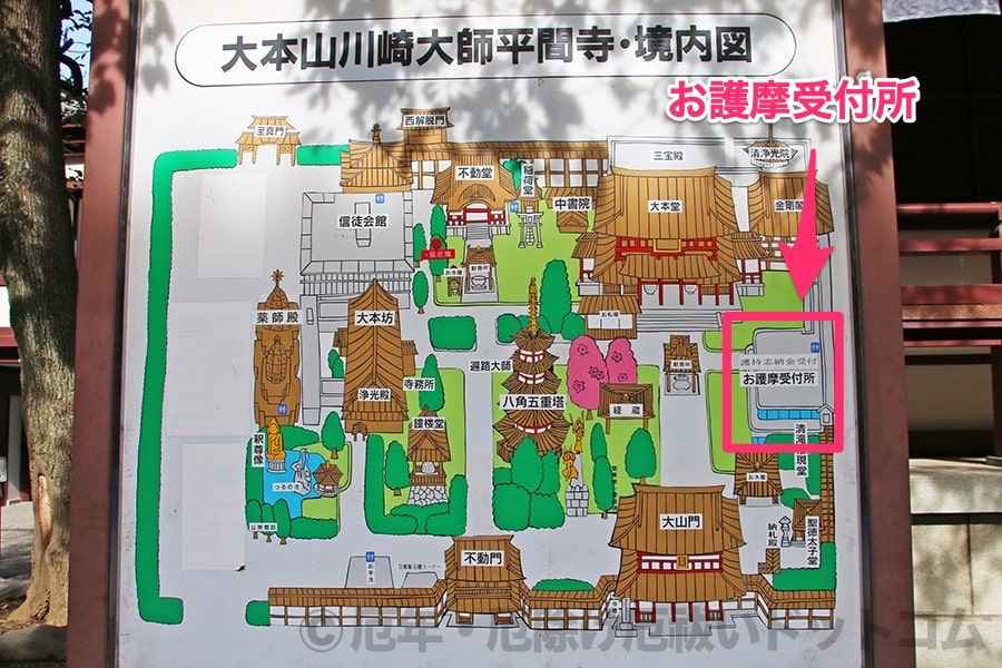 ※川崎大師 境内案内図のお護摩受付所の場所の様子|画像提供:厄年・厄除け厄祓いドットコム