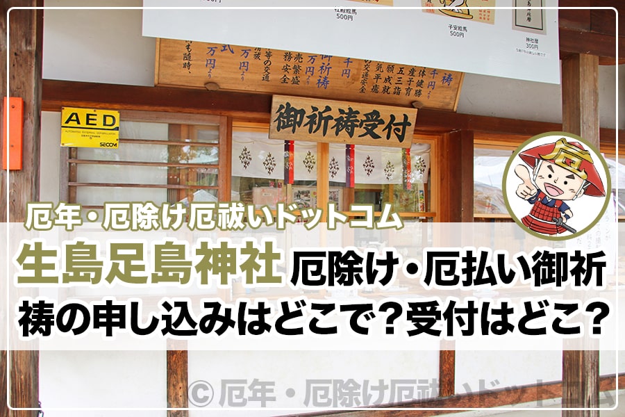 厄除け・厄払いの御祈祷をしてもらいたい当日に、生島足島神社を訪れて直接申し込もうね。
