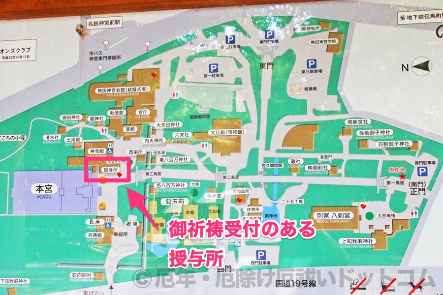 ※熱田神宮 境内案内図の授与所の場所の様子|画像提供:厄年・厄除け厄祓いドットコム