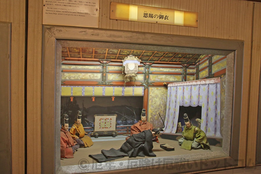 写真のように、菅原道真公の生涯で大事な場面場面を、多くの人形とそれに合わせた衣装、詳細までこだわったジオラマとともに紹介してくれています。
