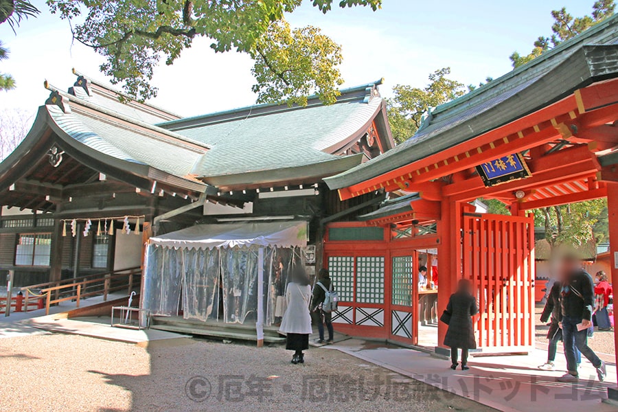 ※住吉大社 本宮・祈祷神楽受付のあるところから祈祷殿(写真左)への様子|画像提供:厄年・厄除け厄祓いドットコム