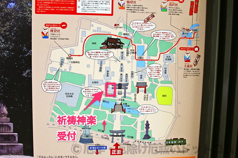 ※住吉大社 境内案内図での祈祷神楽受付の場所の様子|画像提供:厄年・厄除け厄祓いドットコム