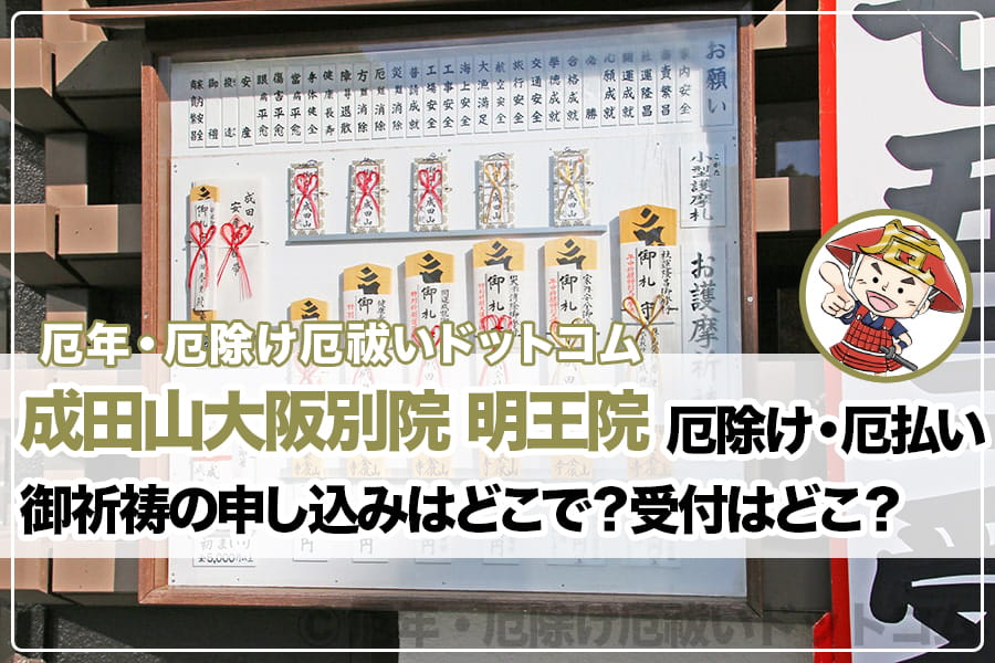 ※成田山大阪別院明王院 御祈祷受付のある装受付の様子|画像提供:厄年・厄除け厄祓いドットコム