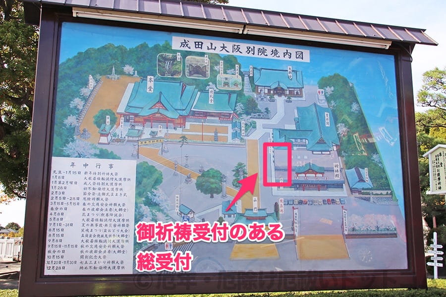 ※成田山大阪別院明王院 境内案内図総受付の場所の様子|画像提供:厄年・厄除け厄祓いドットコム
