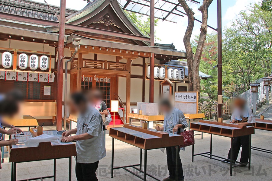 その御祈祷受付所の手前に↑写真のような御祈祷の申込用紙の置かれた記入台があるので、そこで申込用紙に記入をしてから、御祈祷受付所の中にある窓口で申し込みを行います。