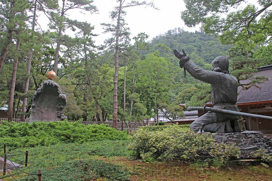 こちらの御神像は大国主大神が日本海の荒波の向こうから現れた幸魂奇魂(さきみたまくしみたま)を授けられて、結びの神になったシーンを表現しています。