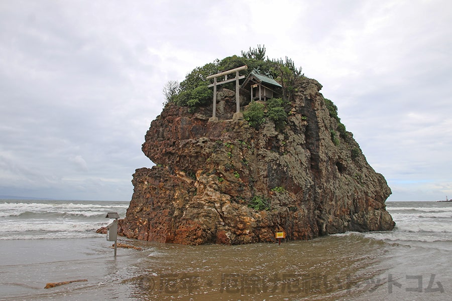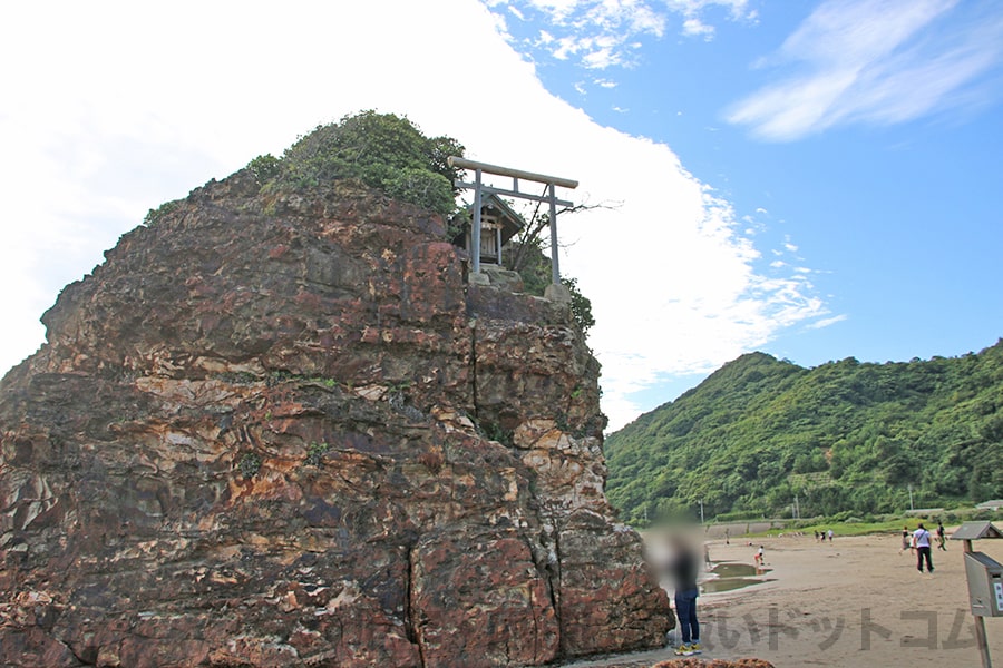 浜には弁天島があり、引き潮の際は写真のように島に触れることができます。