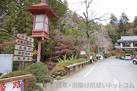※後述しますが、厄除けの祈祷希望者はこの駐車場近くから、境内メインの参道ではなく、祈祷申し込みの場所がこの駐車場から写真右手に進んだところにありますので、そちらに直接行き、祈祷申し込みを行うのも順路としてはありです。