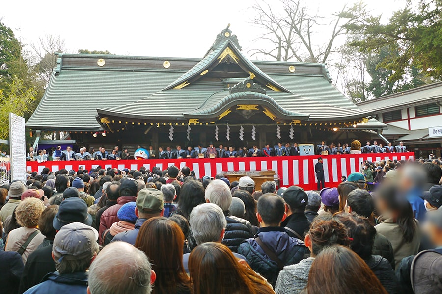※神社・お寺それぞれの節分祭・節分会の様子(上:大國魂神社の節分祭、下:目黒不動尊の節分会)|画像提供:厄年・厄除け厄祓いドットコム