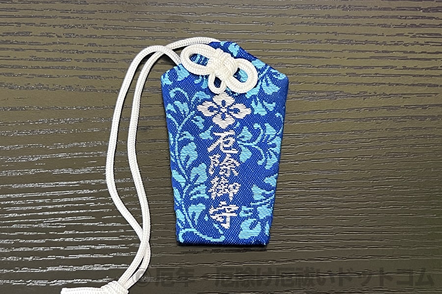 美しい青地に白糸で伊勢神宮の神紋である「花菱紋」と「厄除御守」が記されてますね。