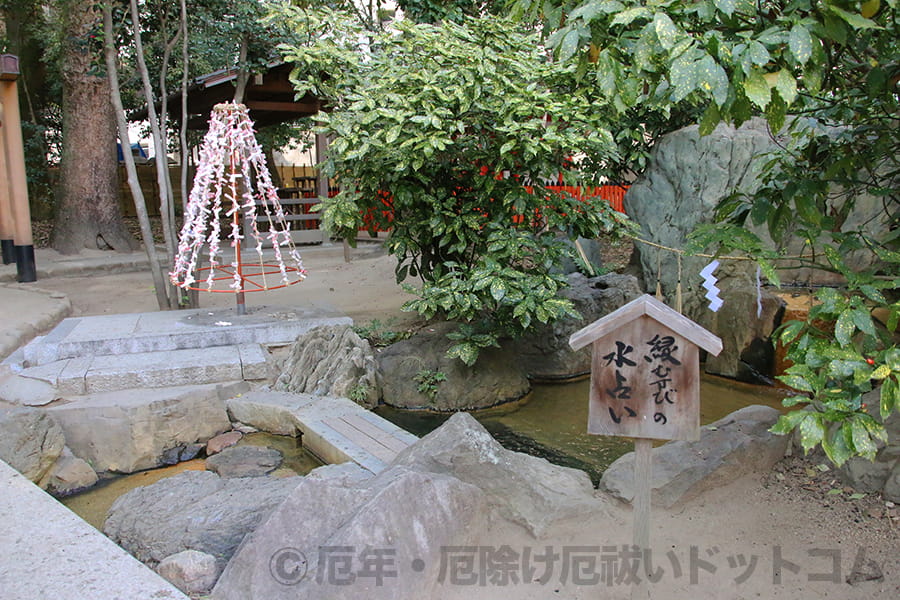 水占(水みくじ)は水に浸すと文字が浮かぶ、生田神社の人気のおみくじです。水に浸す場所は生田の森の中にあります。